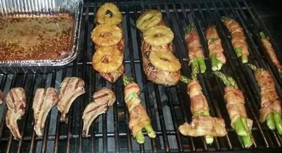 No hot dogs or hamburgers on this tailgate menu! From Lamb Chops to Bacon-Wrapped Asparagus, we bring multiple grills to every game and present a feast the likes of which you will not find anywhere!!! Nothing awakens the appetite like the anticipation of smelling the food you are about to eat being cooked over wood and charcoal.